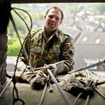 2010Part of a series of photo's I made for the Torenfeesten in Bakel, June 2010. Three abseilers descended from the Bakel church tower. This is Koen Curfs. Onderdeel van een serie foto's die ik maakte bij de Torenfeesten in Bakel, juni 2010. Drie abseilers daalden van de kerktoren af. Dit is Koen Curfs.